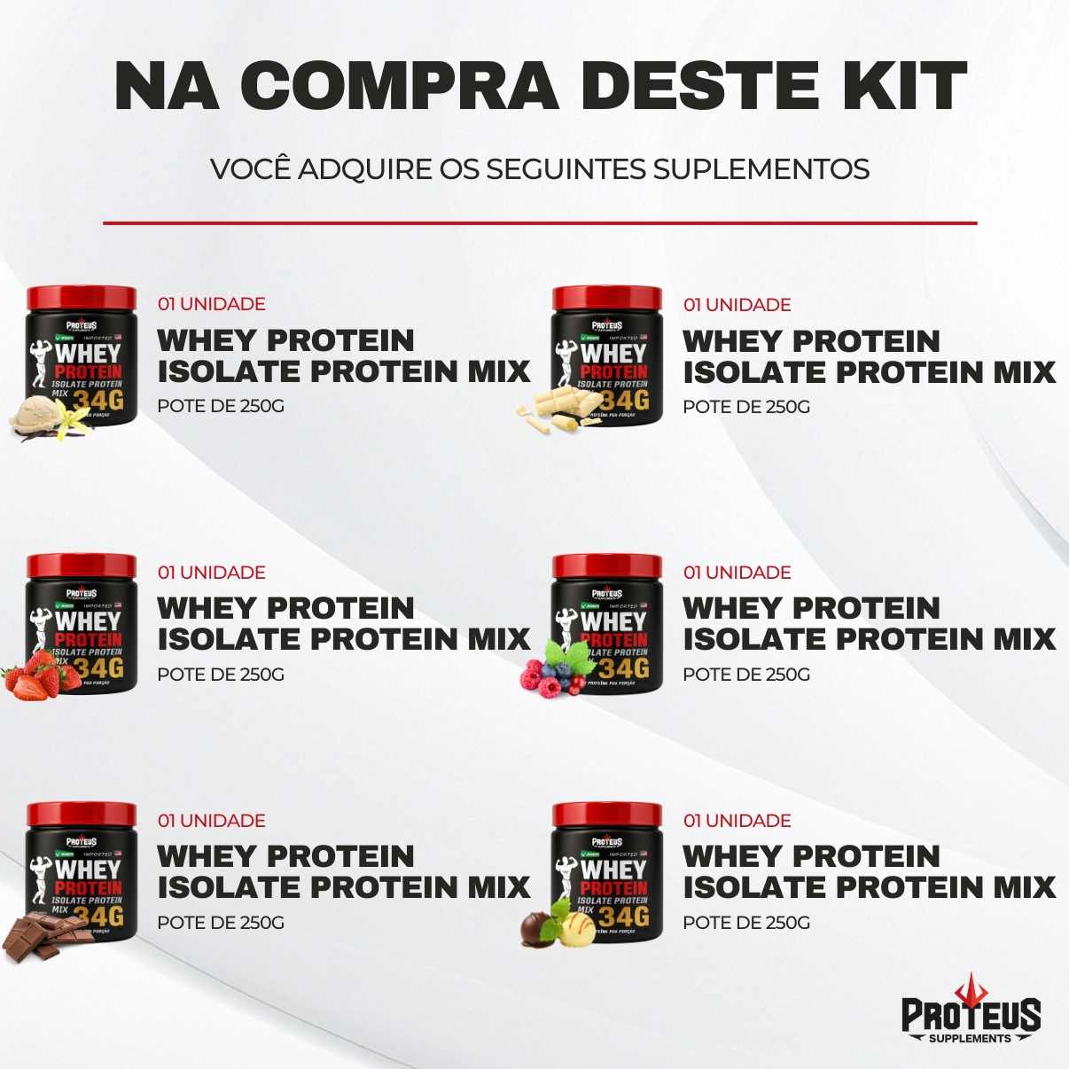 06 Unidades: Whey Protein Isolate Protein Mix – Pote de 250g (6 Sabores)
