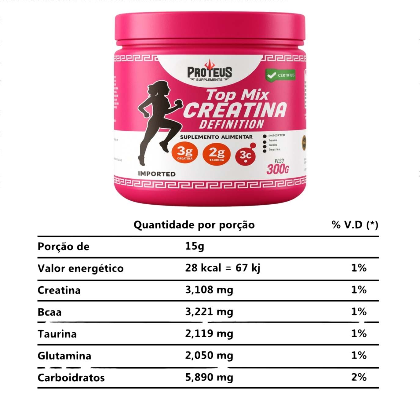 02 Unidades: Creatina Topmix Definition Mulher – Pote de 300g