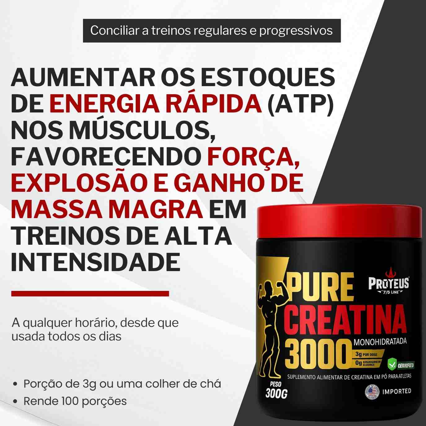 2- Pure Creatina 3000 : 100% creatina monohidratada com laudo técnico.