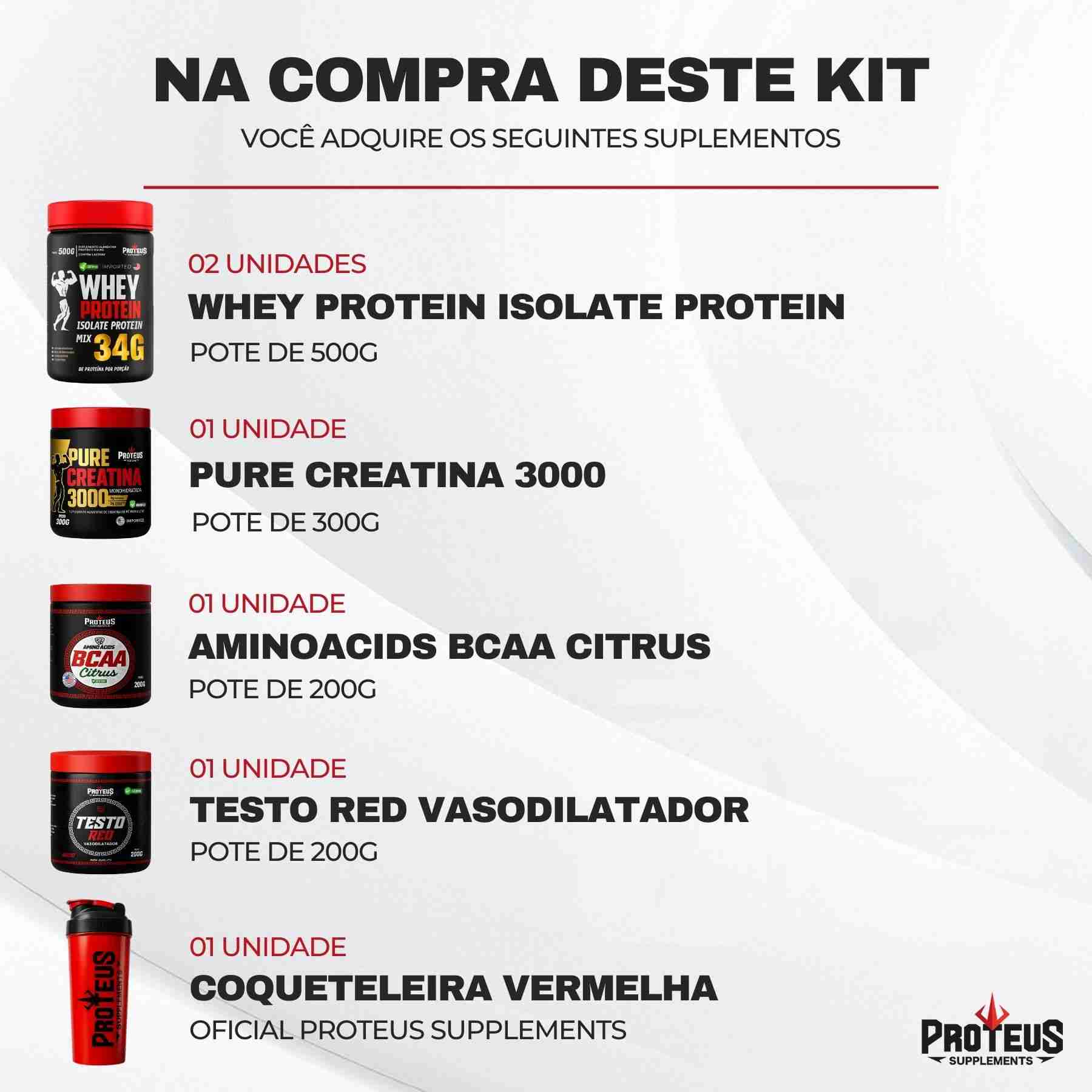 Whey Protein Black Isolado 1kg + Creatina Monohidratada 100% Pura + Bcaa Aminoácidos + Testo Red + Coqueteleira