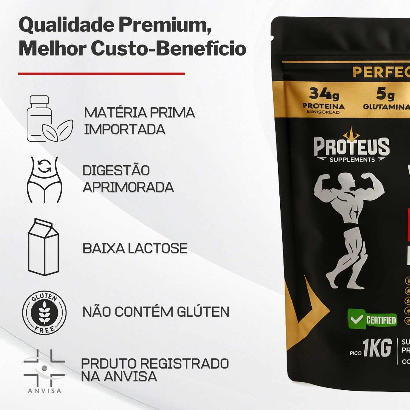 Proteus Supplements é uma fábrica nacional de suplementos de altissima qualidade. Utilizando 80% de sua matéria-prima importada, mesmo as matérias-primas nacionais são rigorosamente selecionadas para fornecer maior qualidade. Com desenvolvimento em dois dos maiores laboratórios do mundo, um no Brasil e outro nos Estados Unidos, atendemos aos critérios técnicos mais rigorosos e mantemos a precisão das fórmulas.