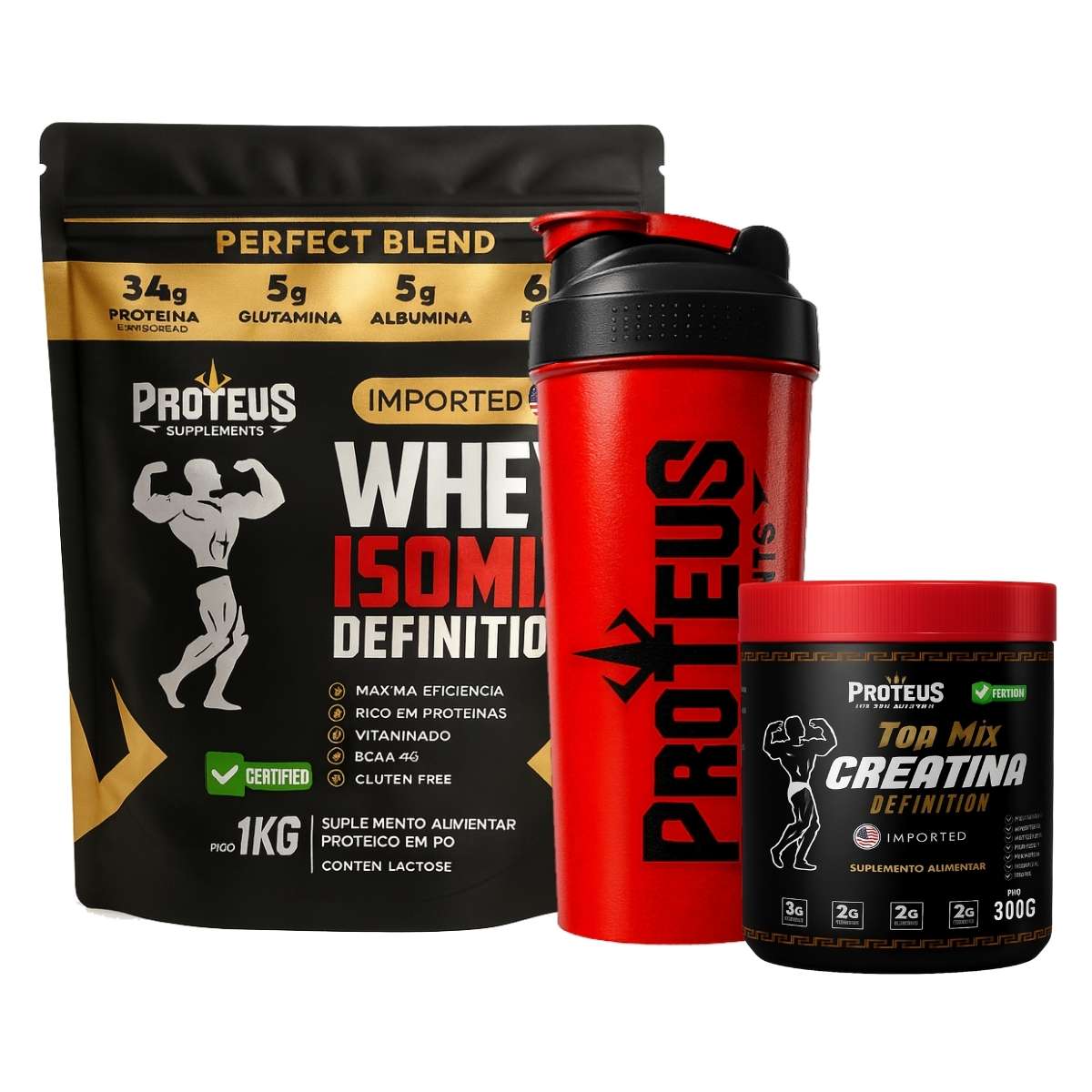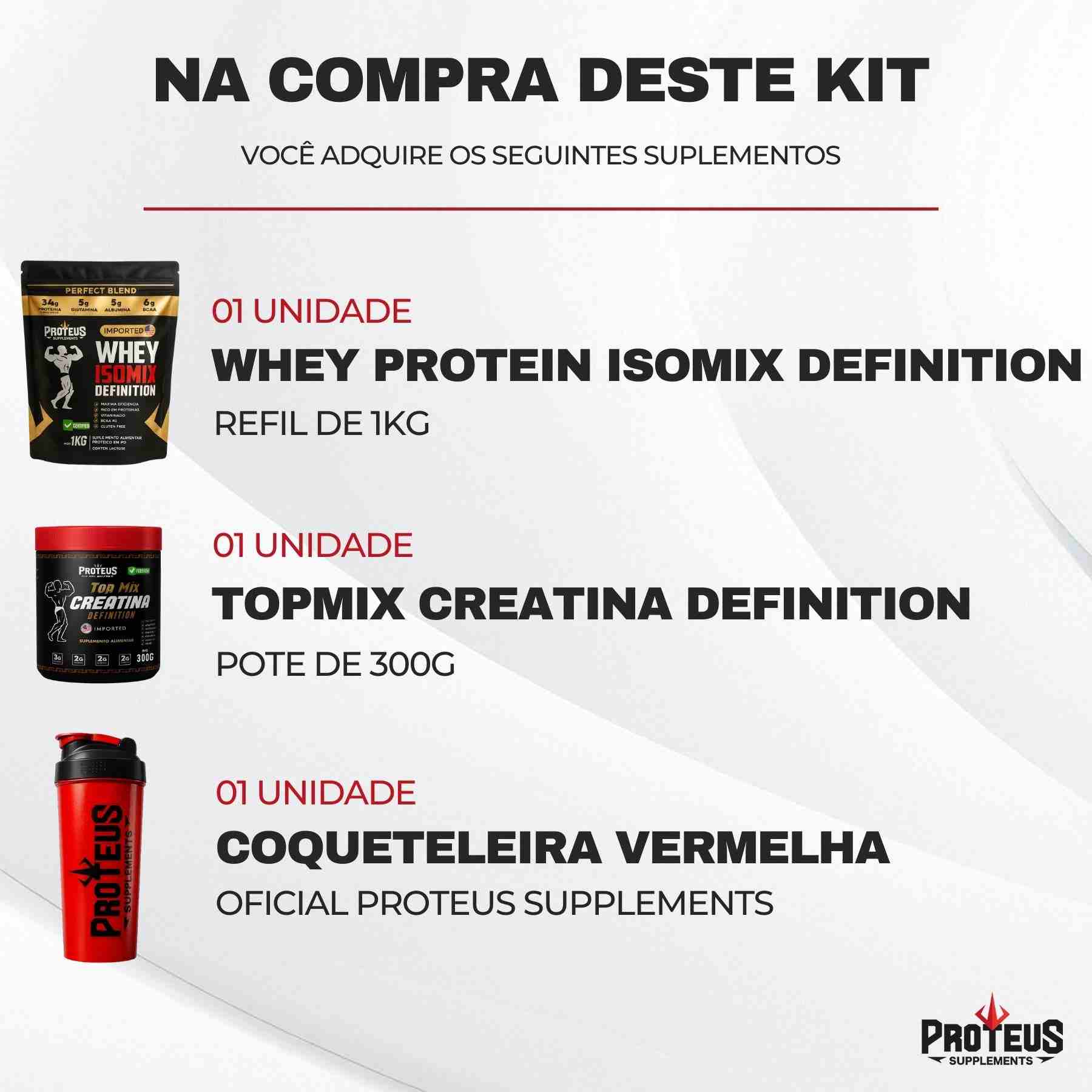 Whey Protein Black Isolado 1kg + Creatina Monohidratada Topmix + Coqueteleira