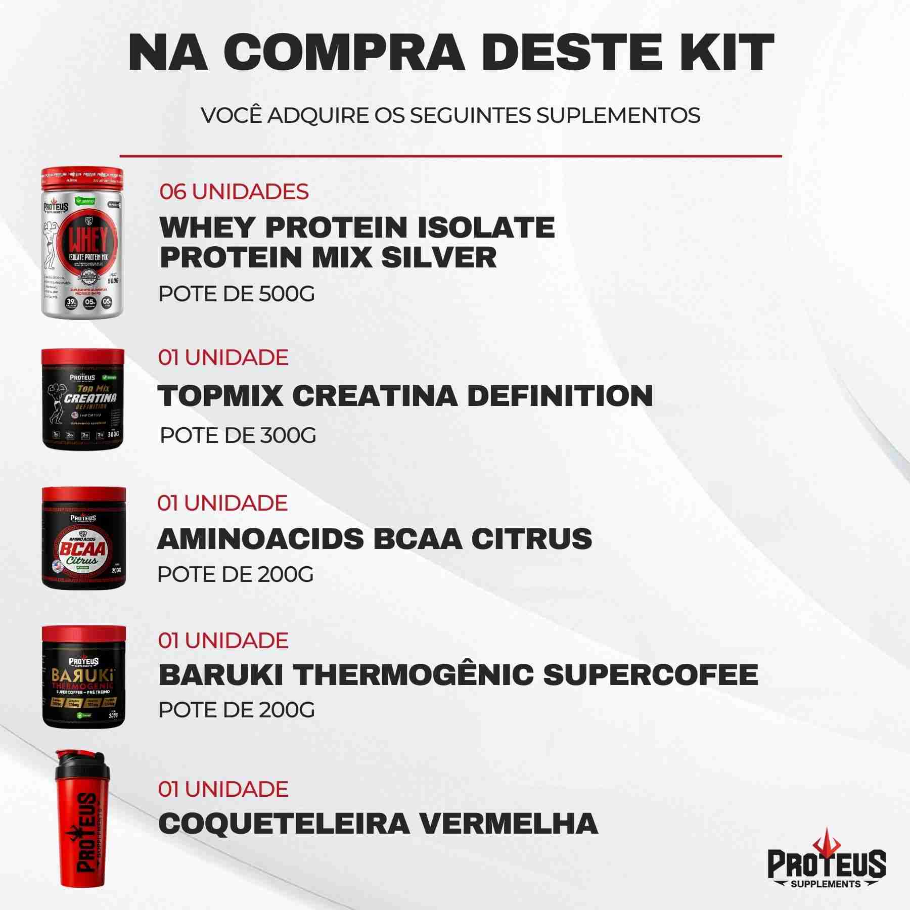 Whey Protein Black Isolado 3kg + BCAA + Termogênico + Topmix Creatina Definiton + Coqueteleira
