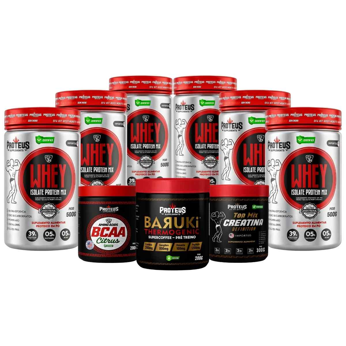 Whey Protein Black Isolado 3kg + BCAA + Termogênico + Topmix Creatina Definiton