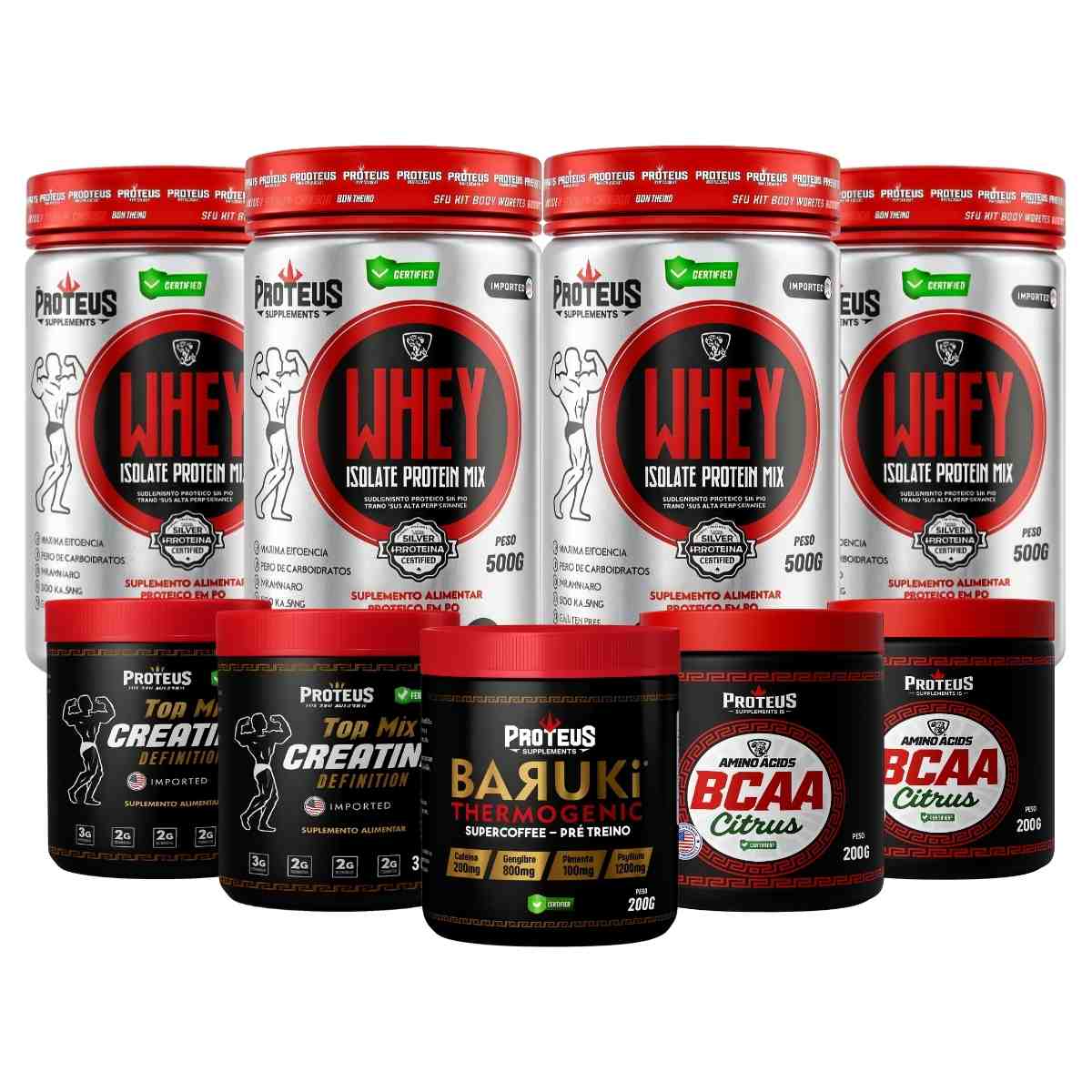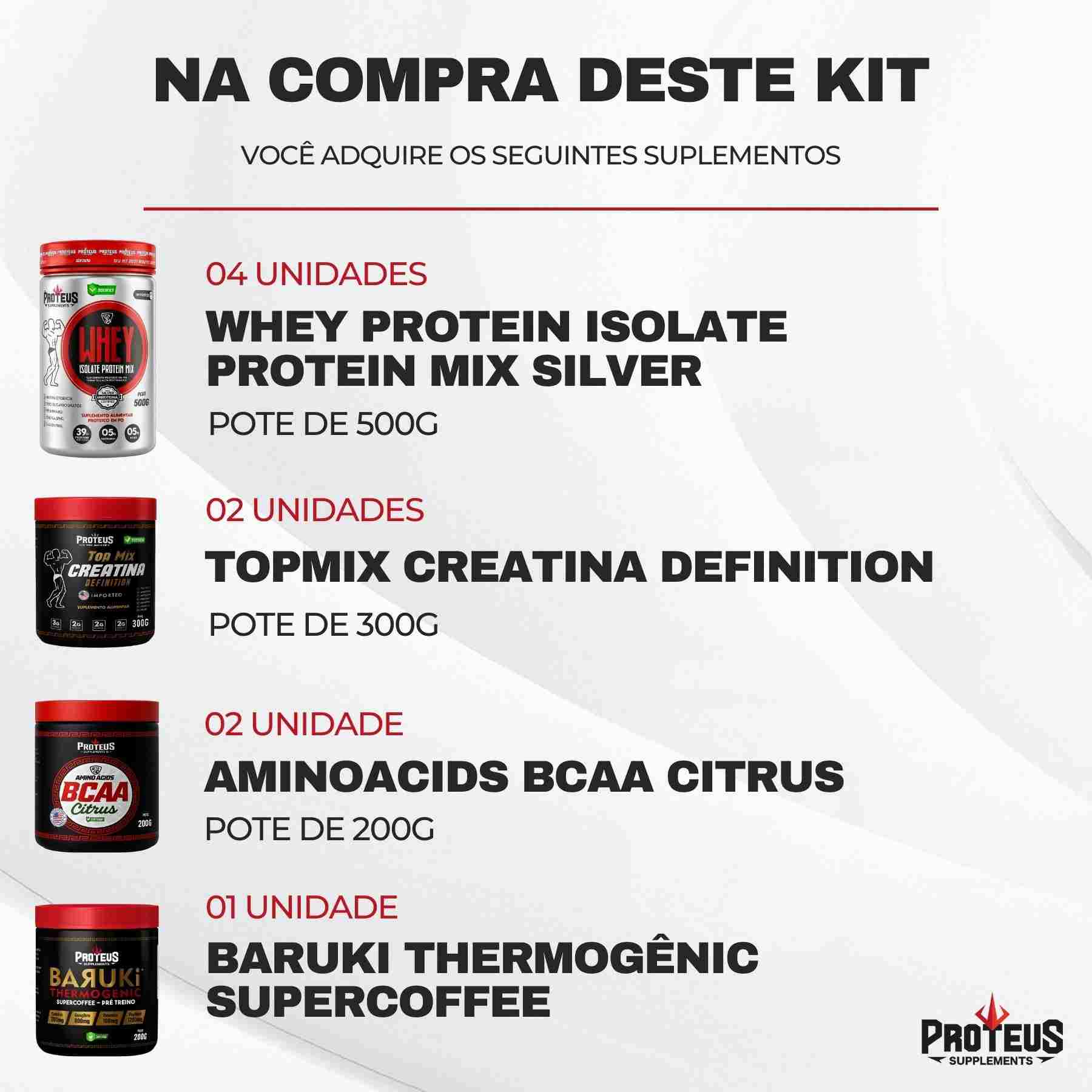 Whey Protein Isolado Mix 2kg + Topmix Creatina Definition + Bcaa Aminoácidos + Baruki Termogênico