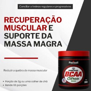 3- Bcaa Citrus Aminoácidos Essenciais: Vitamina B6, Leucina, Isoleucina, Valina e Ácido Cítrico.