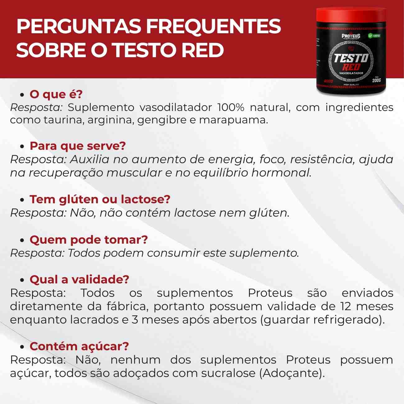 4- Testo Red Vasodilatador: Taurina, arginina, gengibre. Pimenta-preta, marapuama, dextrose.