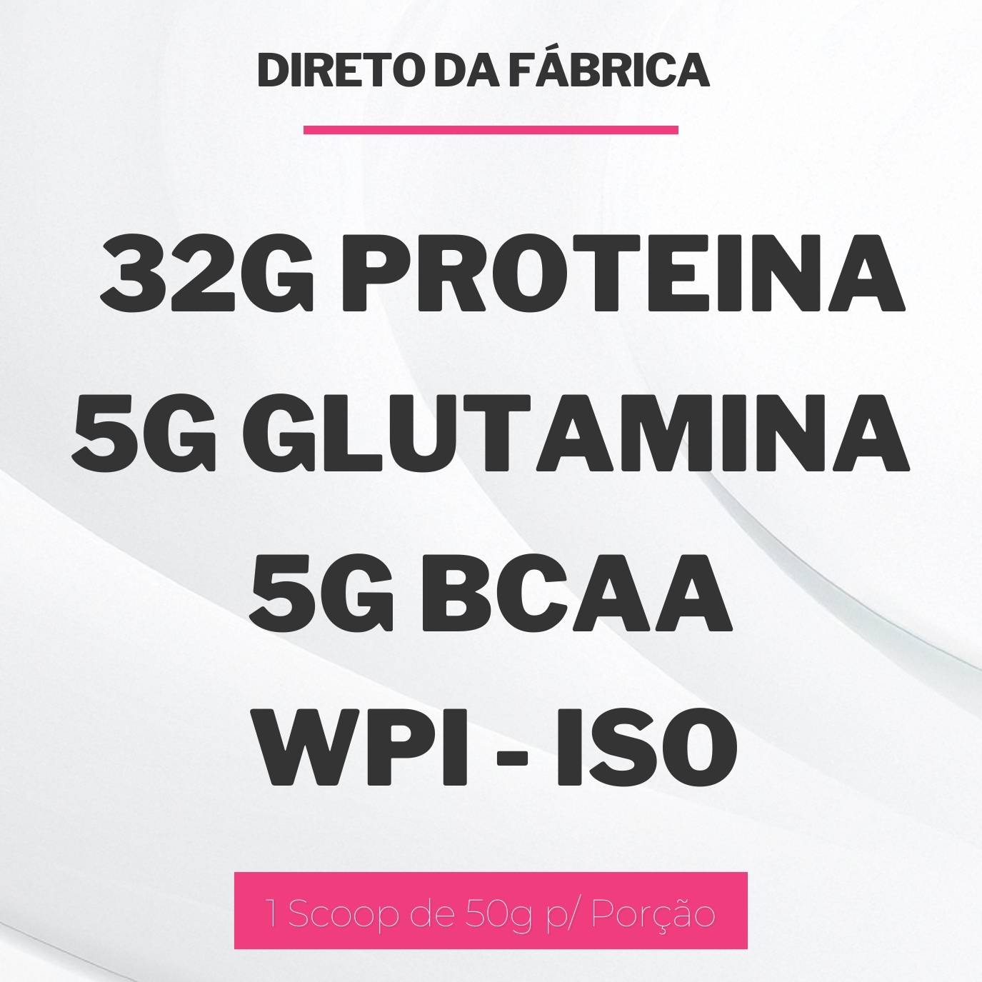 1- Whey Protein: Whey Protein Isolado (WPI), Whey Protein Concentrado (WPC), Soy Protein, Glutamina, Bcaa, Albumina, Dextrose, Sucralose, Sabor.
