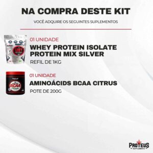 1- Whey Isolate Protein Mix Silver: Whey Protein Isolado (WPI), Whey Protein Concentrado (WPC), Soy Proteína, Glutamina, Bcaa, Albumina, Dextrose, Sabor, Sucralose.