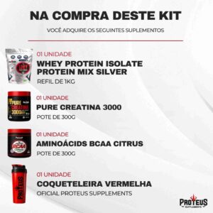 1- Whey Isolate Protein Mix Silver: Whey Protein Isolado (WPI), Whey Protein Concentrado (WPC), Soy Protein, Glutamina, Bcaa, Albumina, Dextrose, Sucralose, Sabor.