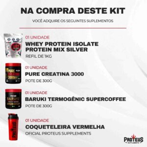 Whey Protein Silver Isolado 1kg + Creatina Monohidratada 100% Pura + Termogênico + Coqueteleira