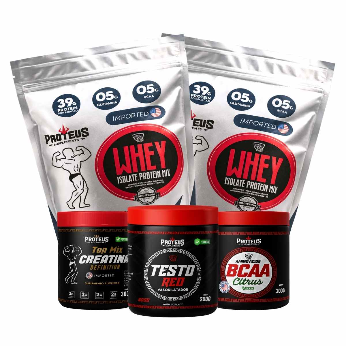 Whey Protein Silver Isolado 2kg + Creatina + Bcaa Aminoácidos + Testo Red