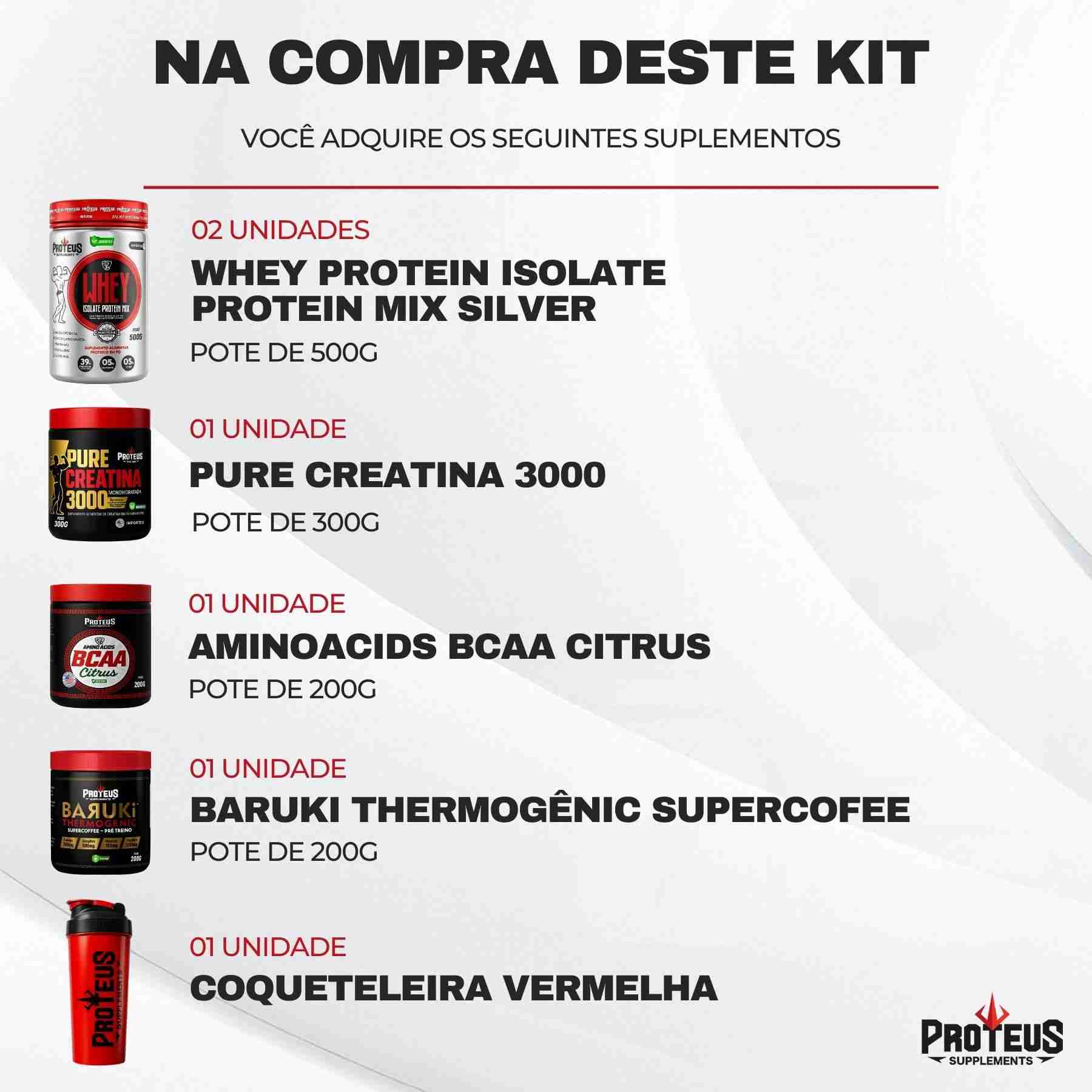Whey Protein Silver Isolado 1kg + Creatina Monohidradata 100% Pura + Termogênico + Aminoácidos + Coqueteleira