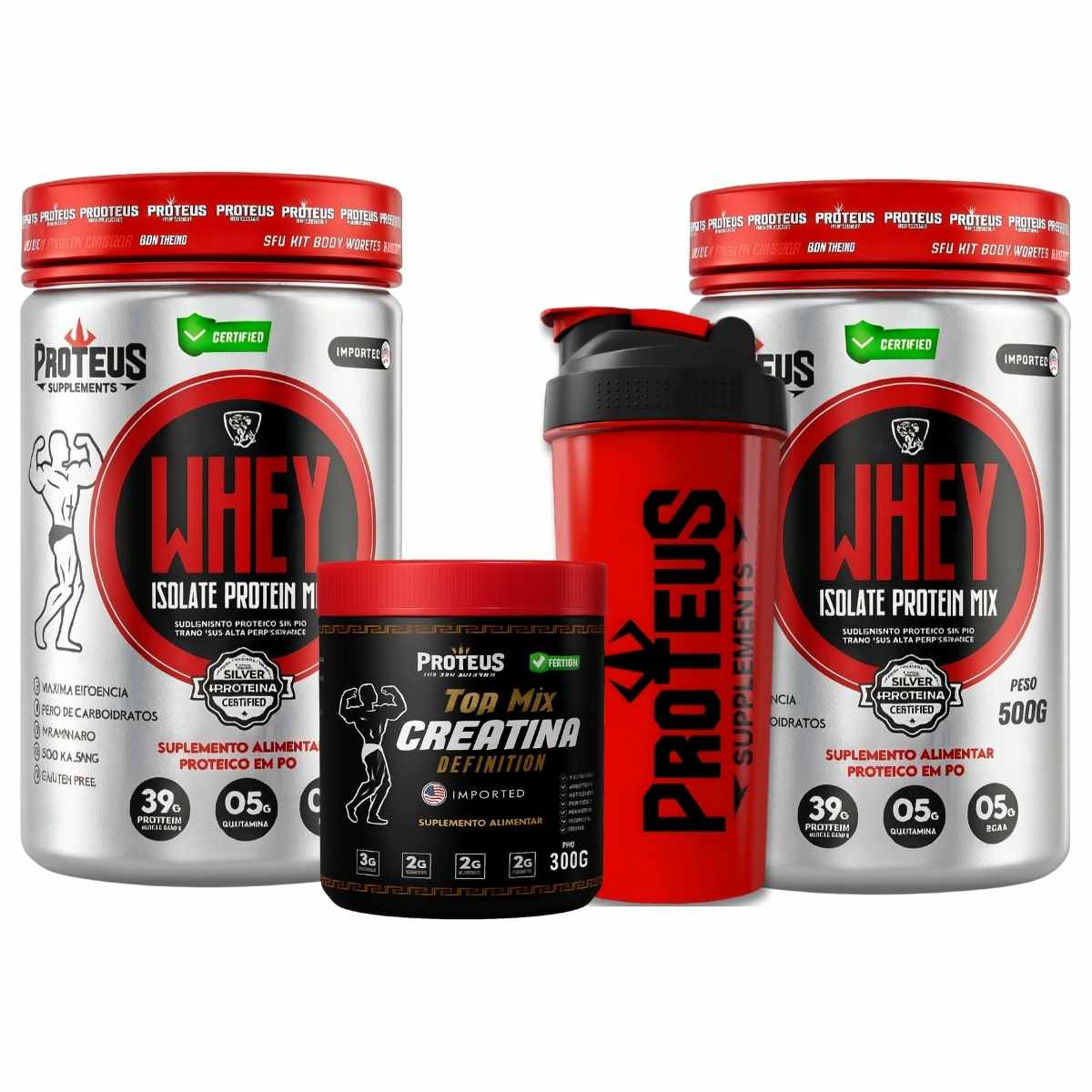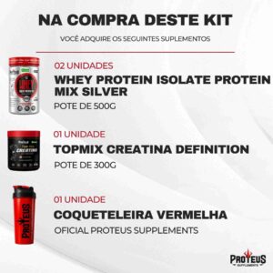 Whey Protein Silver Isolado + Top Mix Creatina Definition + Coqueteleira